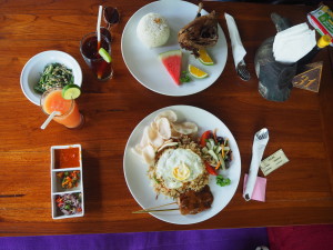 After the Rice terraces, my friend took me to this nice place also in Ubud called ‘Bebek Bengil’ (Crispy duck) where we had lunch. We sat comfortably at cushions laid at the floor inside the open air huts. There was something so serene about the ambience and view in the restaurant.