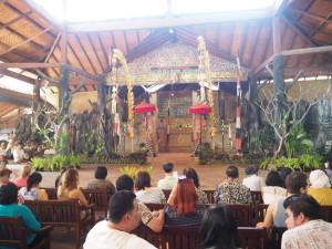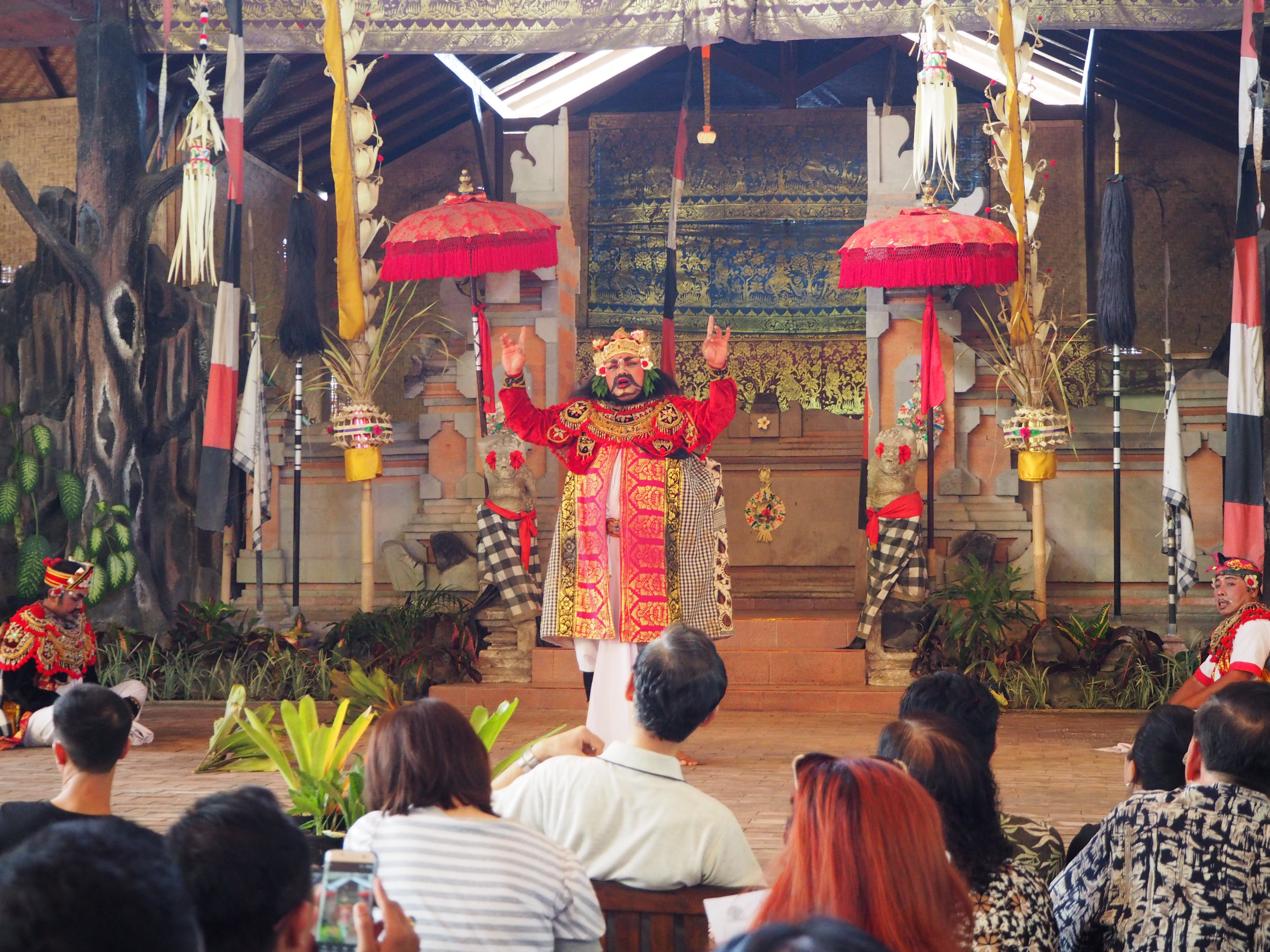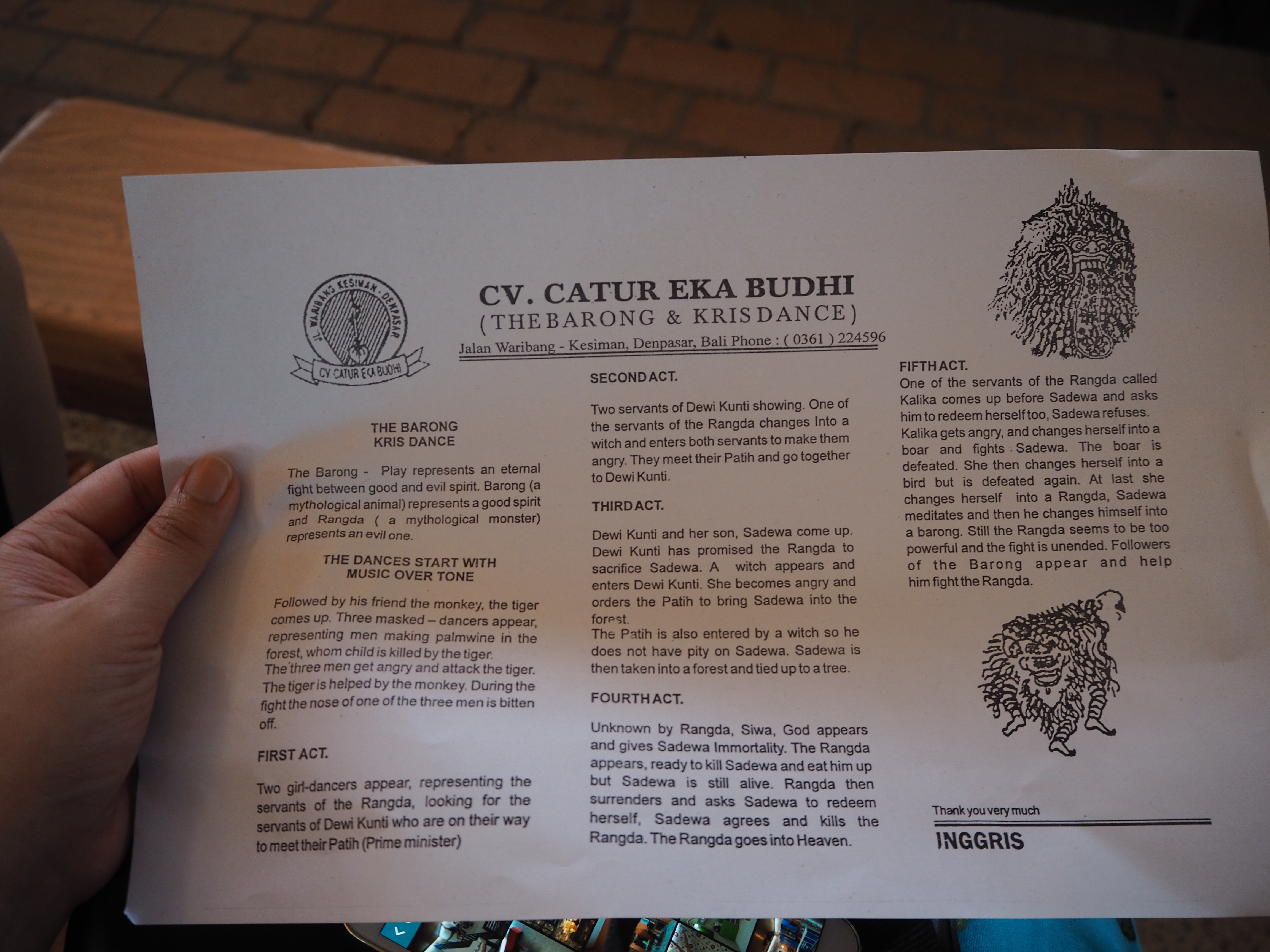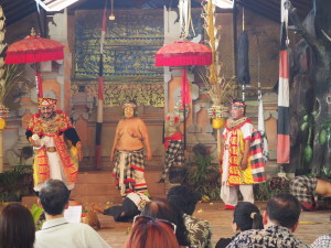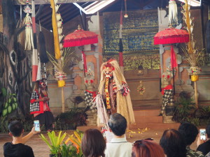 We started the day by attending one of Bali’s dance dramas, Kris Barong dance. There are many versions held in different places, but the one we watched was in Kesiman, Denpasar. The Barong play represents an eternal fight between a good and evil spirit. Barong ( a mythological animal) represents the good spirit, and Rangda ( a mythological monster) represents the evil one.