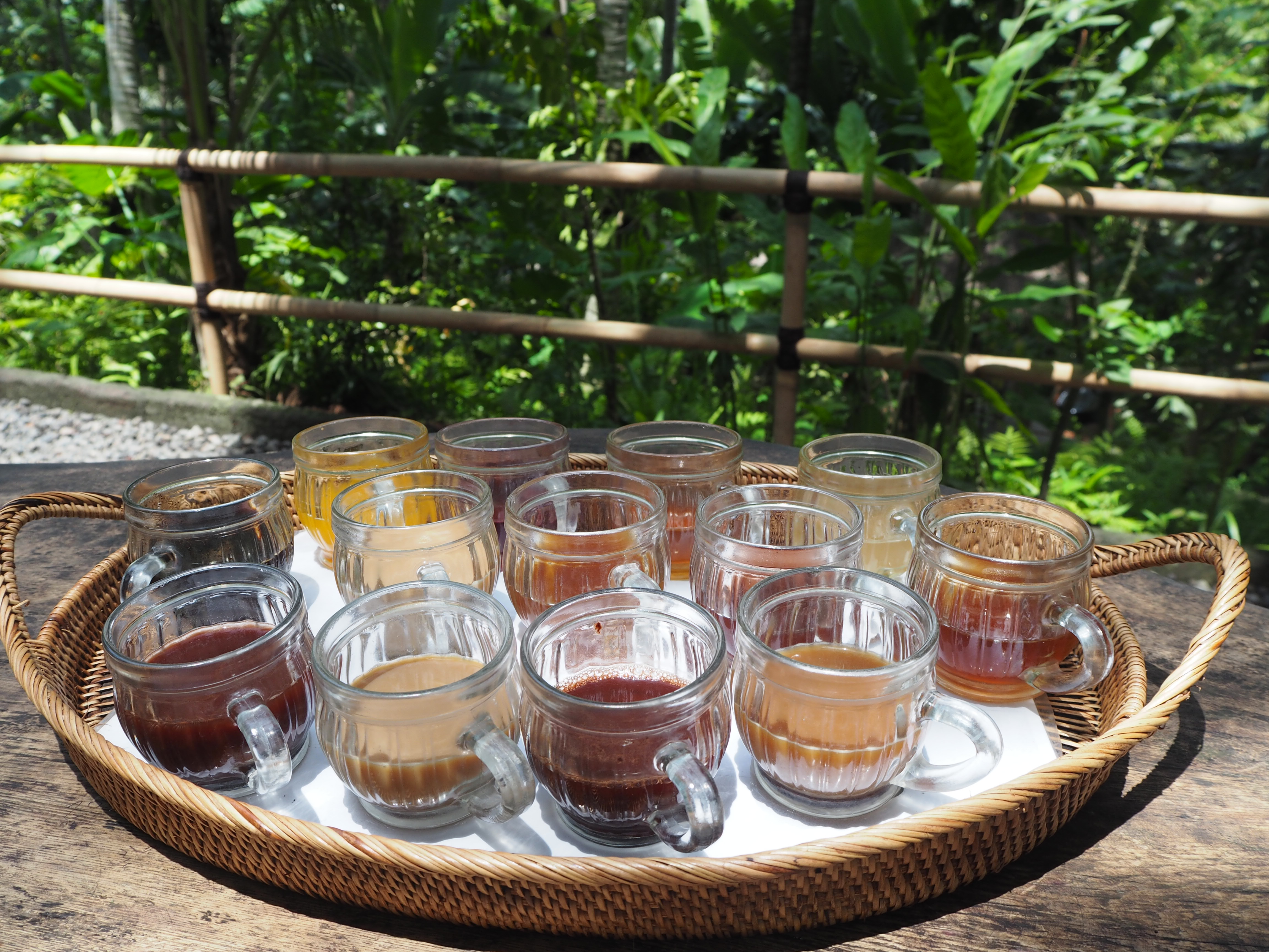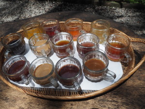 We tried 13 different teas/coffees : herbal tea, mangosteen peel, lemongrass tea, ginger tea, lemon tea, Rosella tea, red ginger tea, Ginseng coffee, Bali coffee, cocoa spices, Vanilla coffee, Bali cocoa, coconut coffee