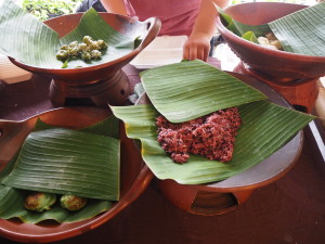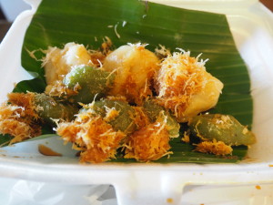 While looking through the stalls and shops inside, I couldn’t help myself and not stop by the Balinese sweets stall. I tried the ‘Jaja Batun bedil’ (glutinous rice with sugar sauce) and ‘Pisang Rai’ (steamed banana).