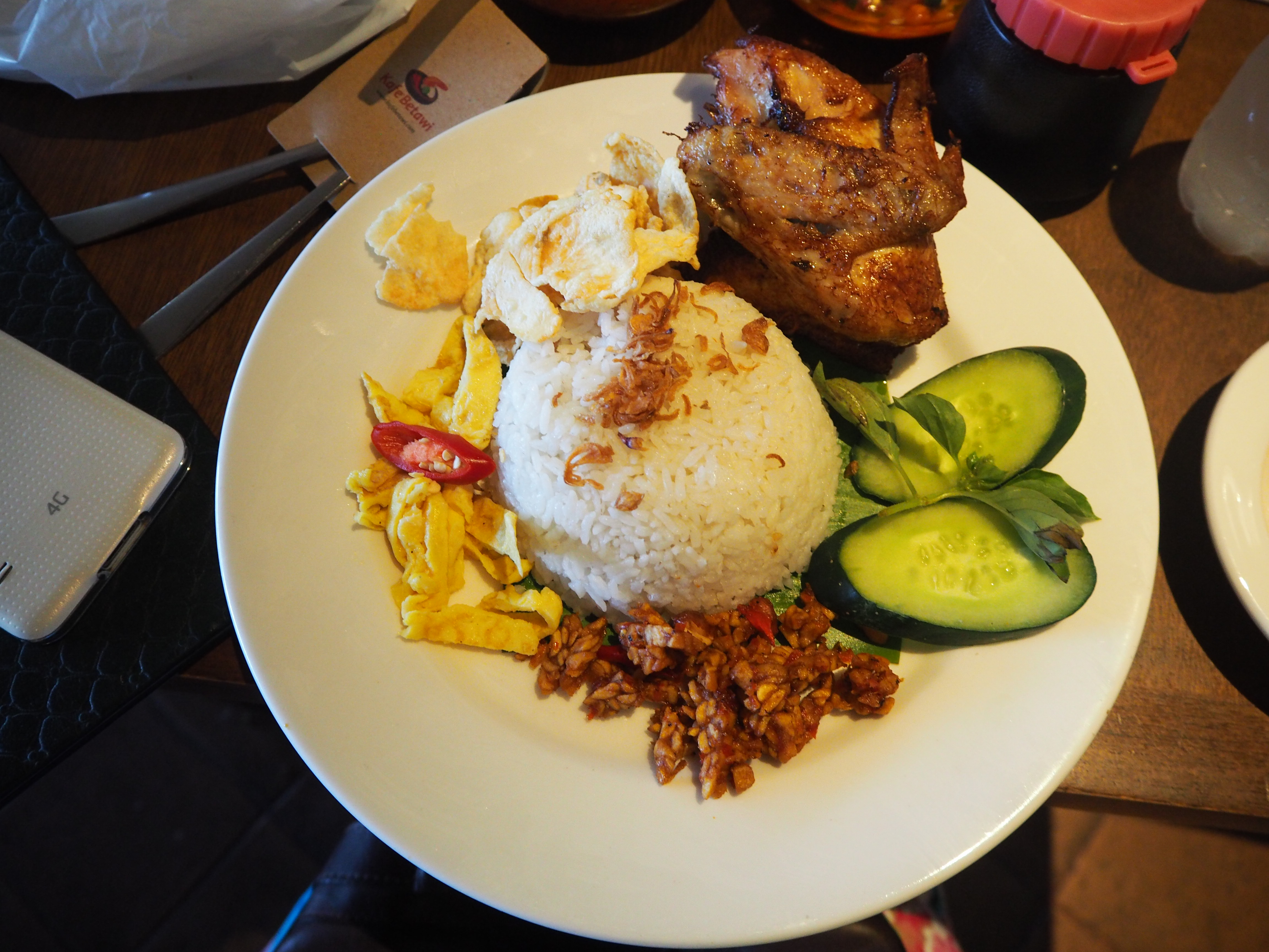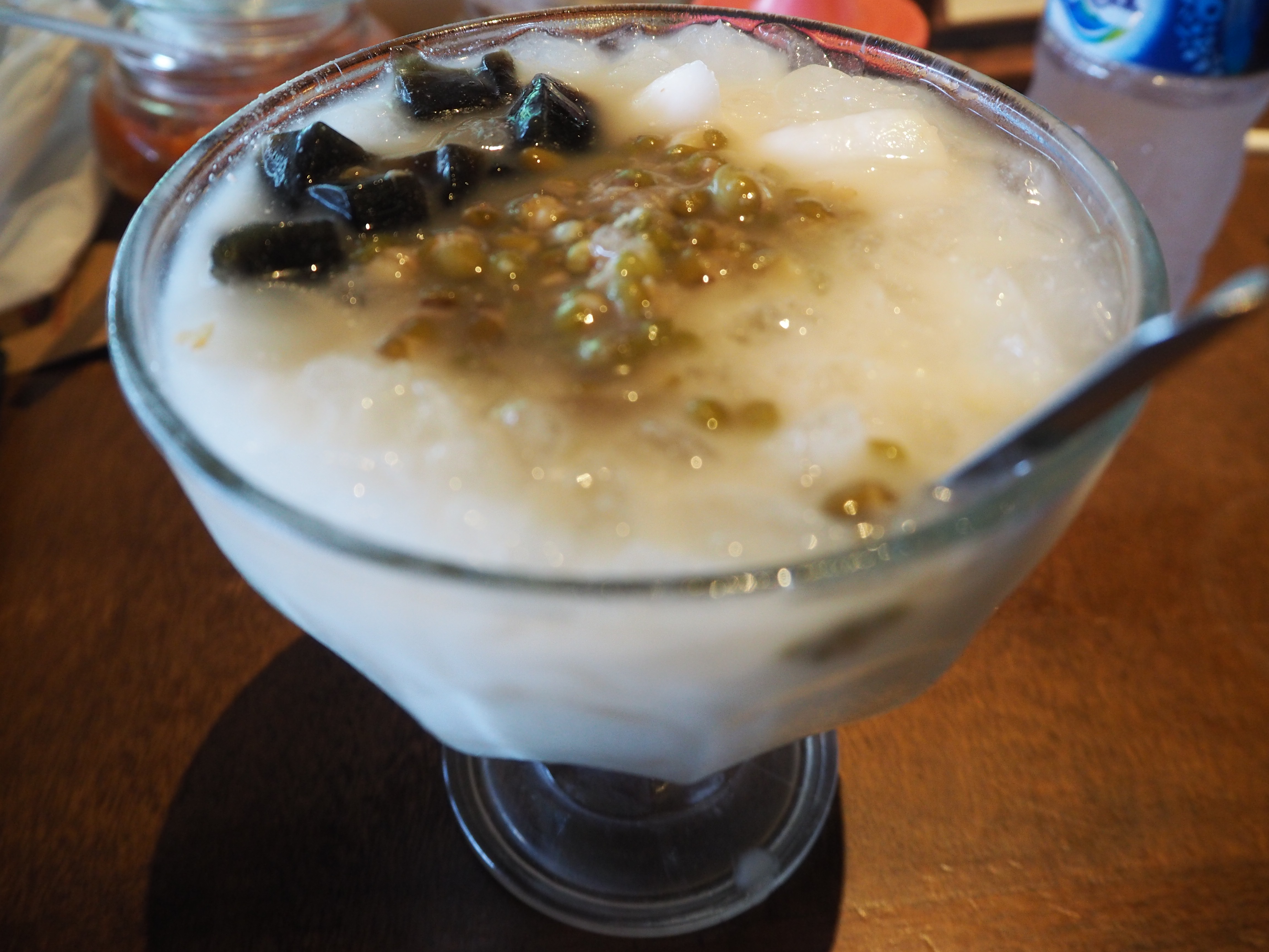 My friend took me to this nice restaurant called Kafe Betawi where the food was cheap and just as delicious. I had ‘Nasi Uduk Ayam Kuning’ (Coconut-infused fragrant rice with traditional friend turmeric-infused chicken). For dessert, I had ‘Es Kacang Hijau’ (green lentil dessert drink), which reminded me of the Filipino dessert ‘Halo-Halo’.