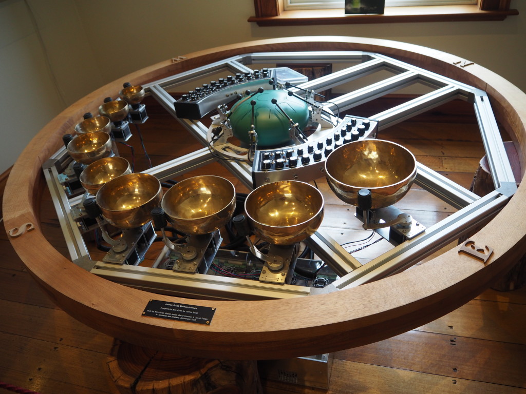 This instrument is called Meteorphonium. It was designed by Nick Ryan for James Boag. It transforms meteorological and environmental readings into a musical symphony